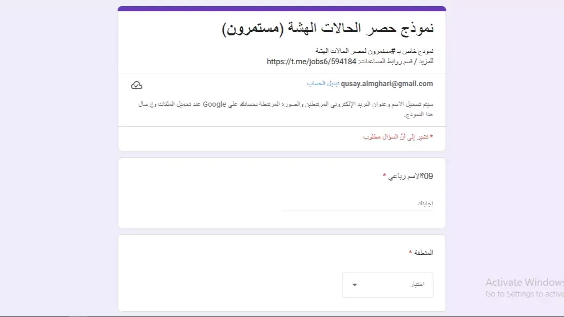 نموذج إلكتروني بعنوان «نموذج حصر الحالات الهشة (مستمرون)» يهدف إلى جمع بيانات شخصية وصحية للأفراد في مدينة غزة ممن يمرّون بظروف إنسانية صعبة، مثل حالات السرطان، الإعاقات، وسوء التغذية. يُستخدم النموذج لتوثيق الحالات المحتاجة وتنظيمها ضمن حملة #مستمرون، بما يساهم في توجيه جهود الدعم والمساعدات بشكل أدق.