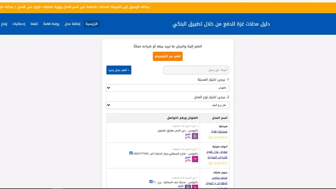 منصة إلكترونية مجتمعية تهدف إلى تجميع وتصنيف المحلات التجارية في قطاع غزة التي تقبل الدفع عبر تطبيق «البنكي»، وهو تطبيق يتيح الدفع والتحويل الإلكتروني باستخدام الهواتف المحمولة. تساعد المنصة المواطنين على العثور بسهولة على المحلات الداعمة للدفع الإلكتروني، بما يوفّر الوقت والجهد ويعزّز الاعتماد على الحلول الرقمية في ظل شح السيولة.