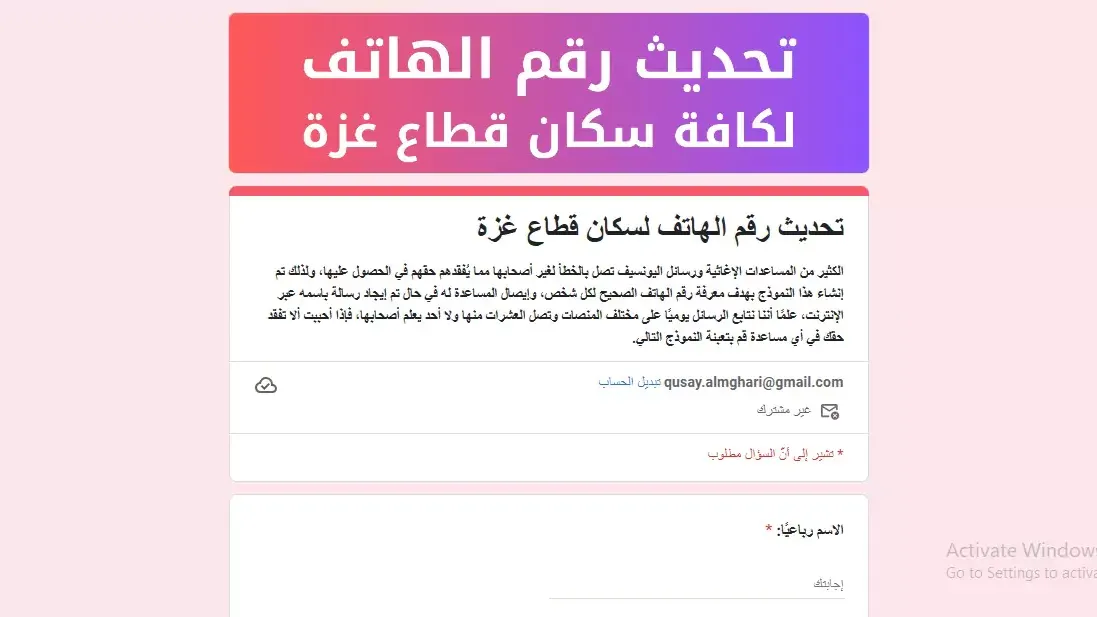 نموذج تطوعي مخصص لسكان قطاع غزة لتحديث أرقام الهواتف، بهدف ضمان وصول رسائل ومساعدات الجهات الإنسانية وعدم ضياعها بسبب بيانات اتصال غير محدثة.