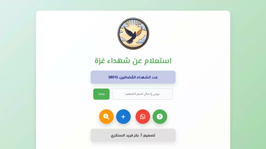 منصة إلكترونية مستقلة تُعنى بتوثيق أسماء شهداء قطاع غزة منذ 7 أكتوبر 2023، وتتيح البحث بالاسم والاطلاع على بيانات الشهداء، مع إمكانية إضافة أو تعديل المعلومات وفق معايير توثيقية تهدف إلى حفظ الذاكرة الجماعية وتسجيل الحقيقة التاريخية للأحداث.